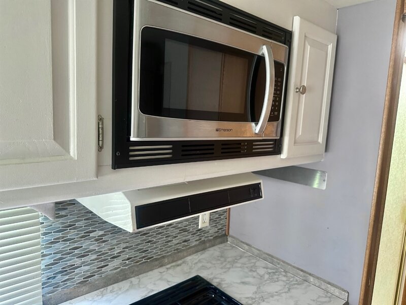 Cabinets and storage area.