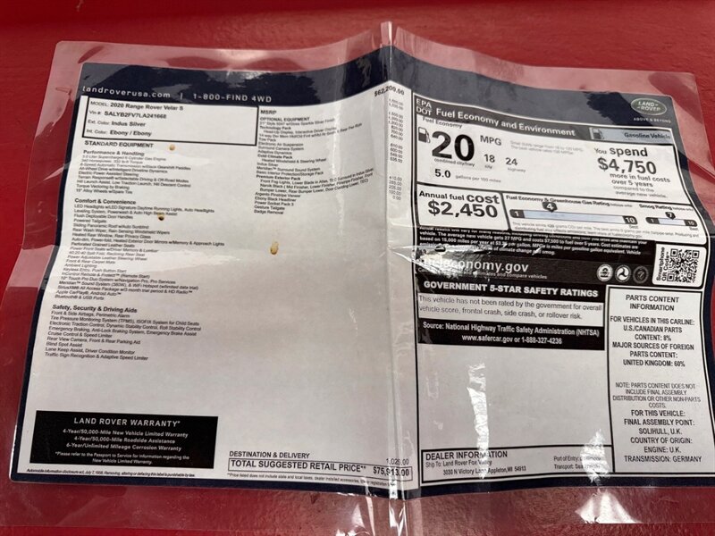 2020 Land Rover Range Rover Velar P340 S 4-Door SUV